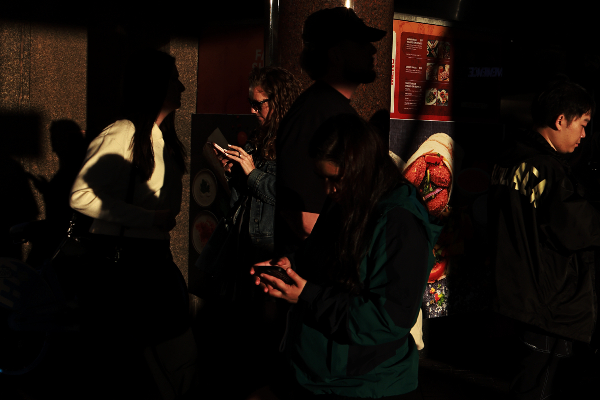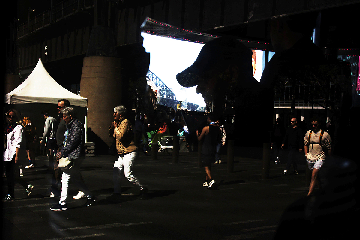 This series explores the tension between light and darkness on the urban streets. High-contrast sunlight and artificial lights transform ordinary passersby into graphic silhouettes, revealing human presence through shape and sometimes detail. Each frame captures fleeting encounters where people become lines, forms, and shadows in layers — moments suspended between anonymity and identity.