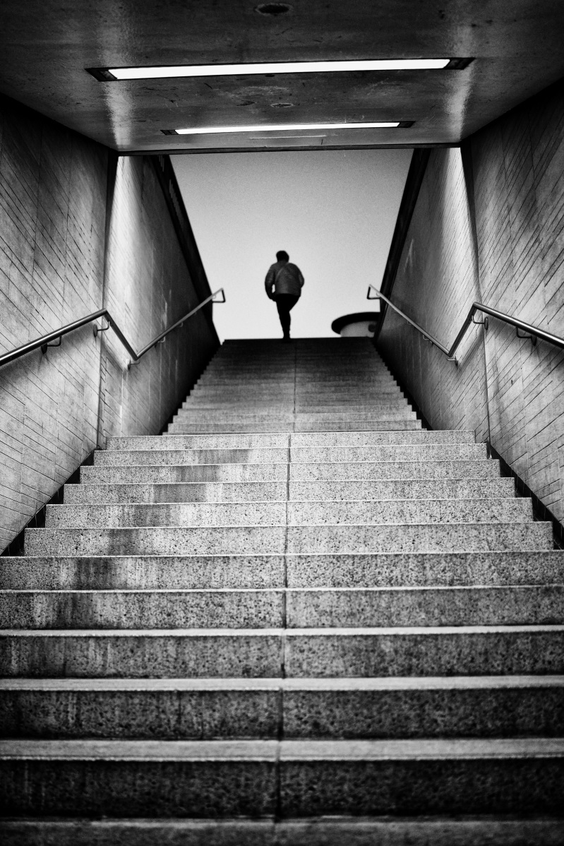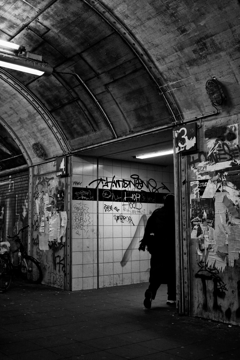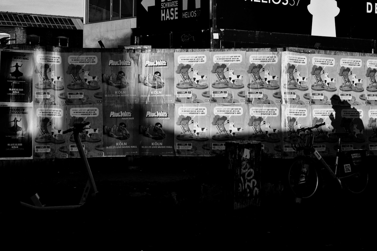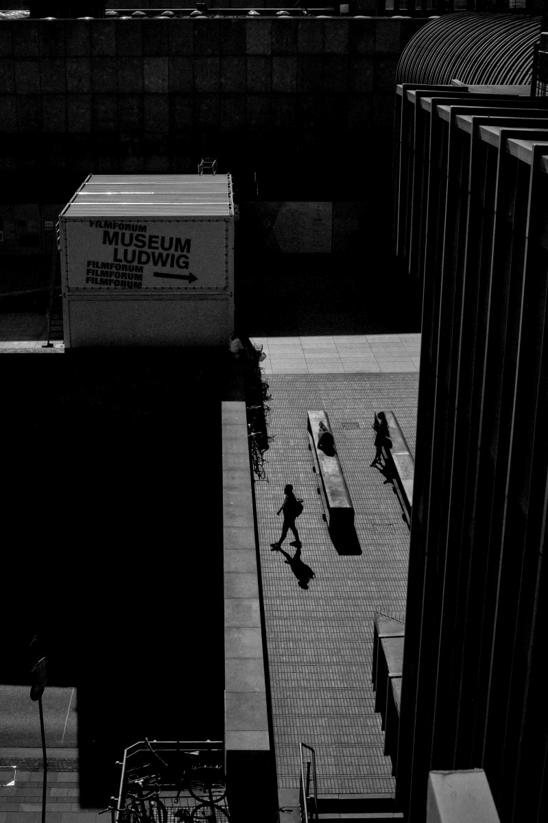 In this series, I explore the interplay of light and shadow in Cologne. The city does not appear as a tourist postcard image, but rather as a stage for contrasts, silhouettes, and fleeting encounters. People emerge like characters in a film noir – sometimes isolated, sometimes part of the urban geometry.