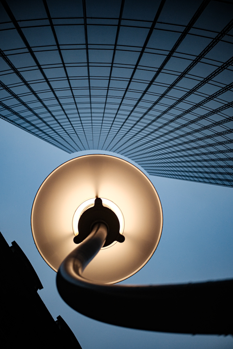 Light in the Grid transforms a single streetlamp into abstract architecture. Thorugh light, shadow and geometry, the images reveal the fragile human touch within the rigid order of steel and glass. A minimalist play of curve and grid, they invite viewers to see the city from a new perspective. Frankfurt, September 2025.