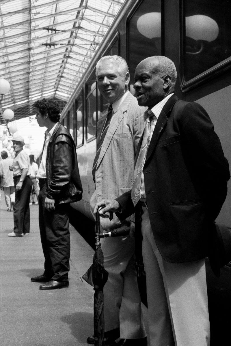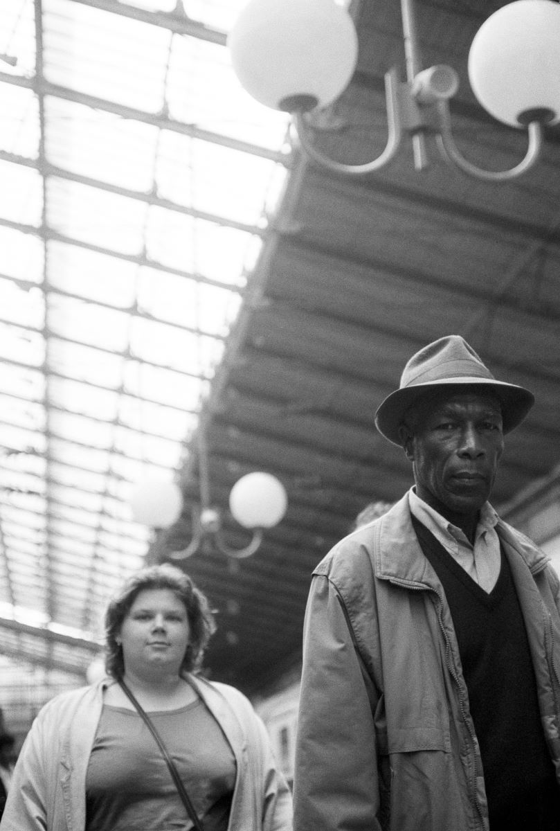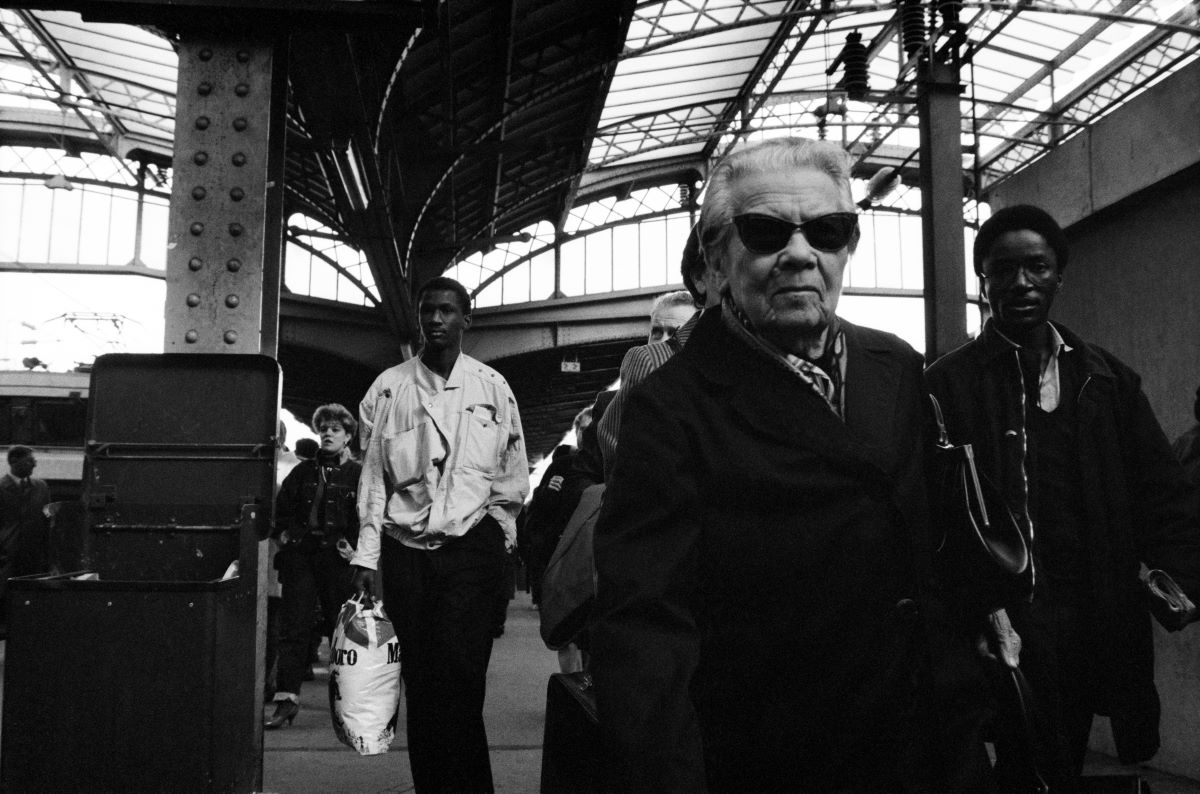 In 1989, when these pictures were taken, it was still possible to access the platform and take some snap shots of arriving and departing passengers. In this series I am showing unknown faces and portraits of passers-by who suddenly come to the forefront, only to disappear into anonymity of the crowd. It’s the way of things, that such pictures can no longer be made so easily today …