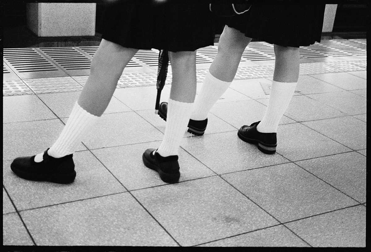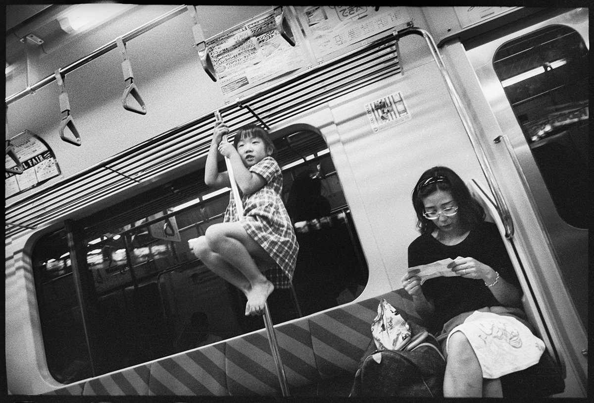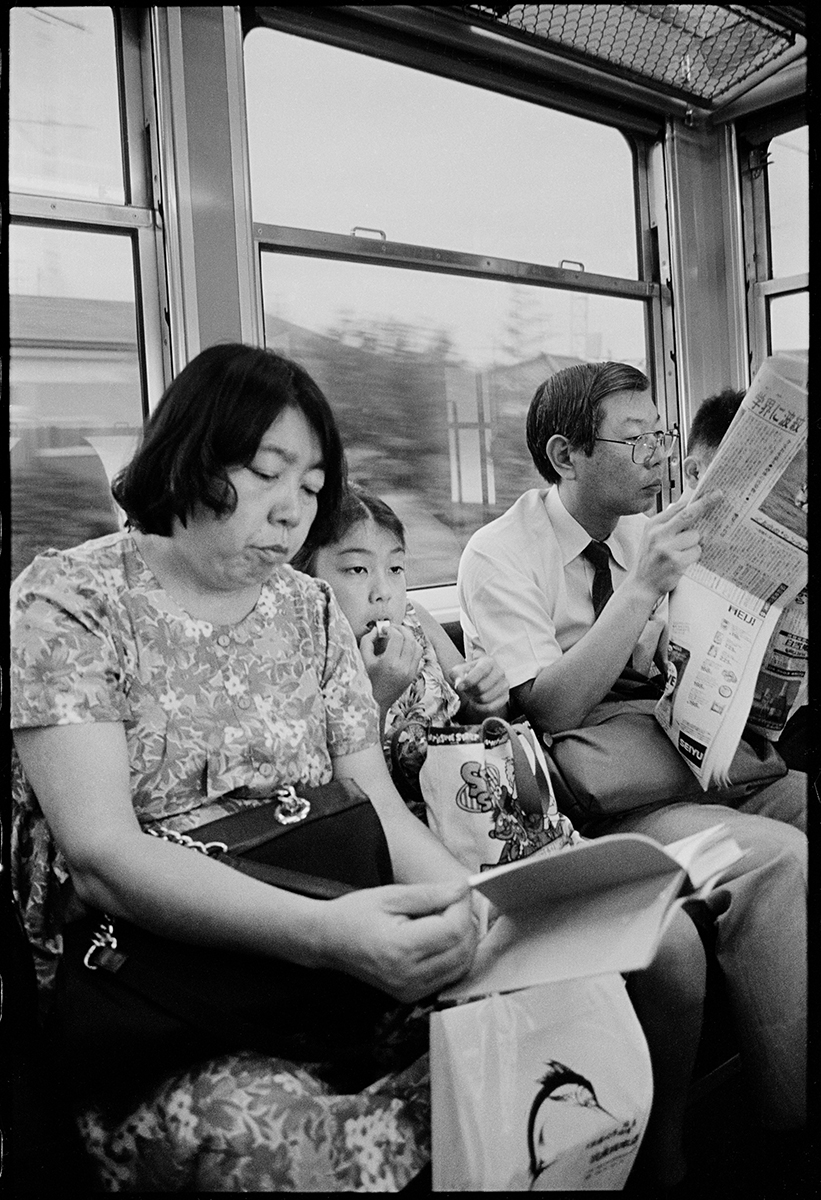 This series began as a student’s exploration of Japan in the mid-1990s, a moment shaped by the “Lost Decade” and the lingering unease following the 1995 subway sarin attack. Shot on black-and-white film, the photographs follow the understated choreographies of everyday commuters—glances, gestures, and the small acts of retreat that shape public life.