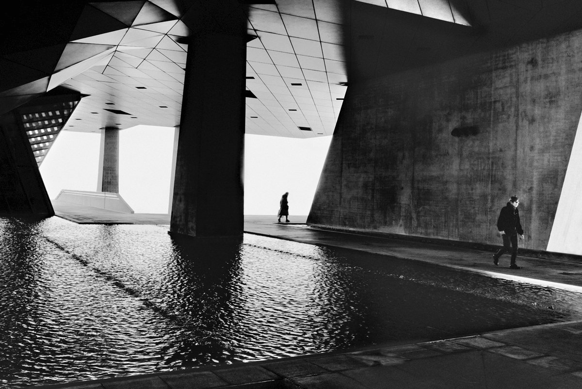 Des passants anonymes parcourent la ville, leurs silhouettes s'inscrivent dans une architecture et des décors géométriques et froids, parfois même absurdes. En quête de lien, de rencontres et d'évasion, ils cherchent un chemin pour sortir de la ville …
