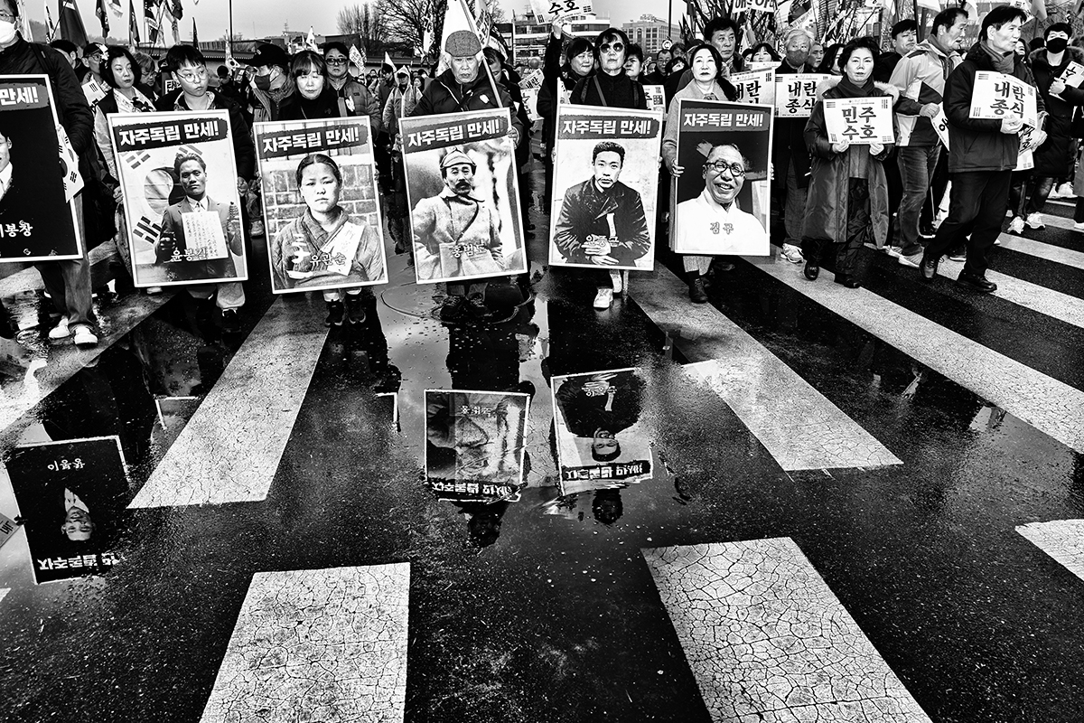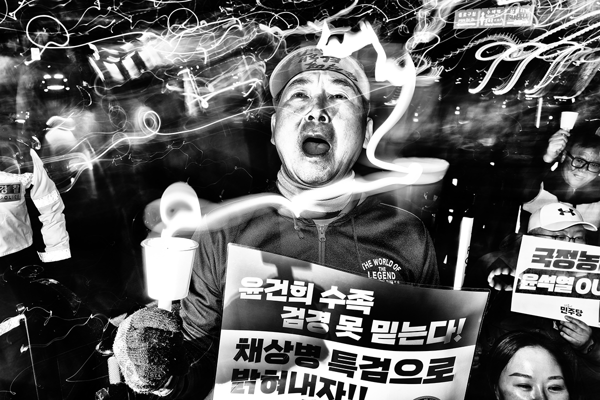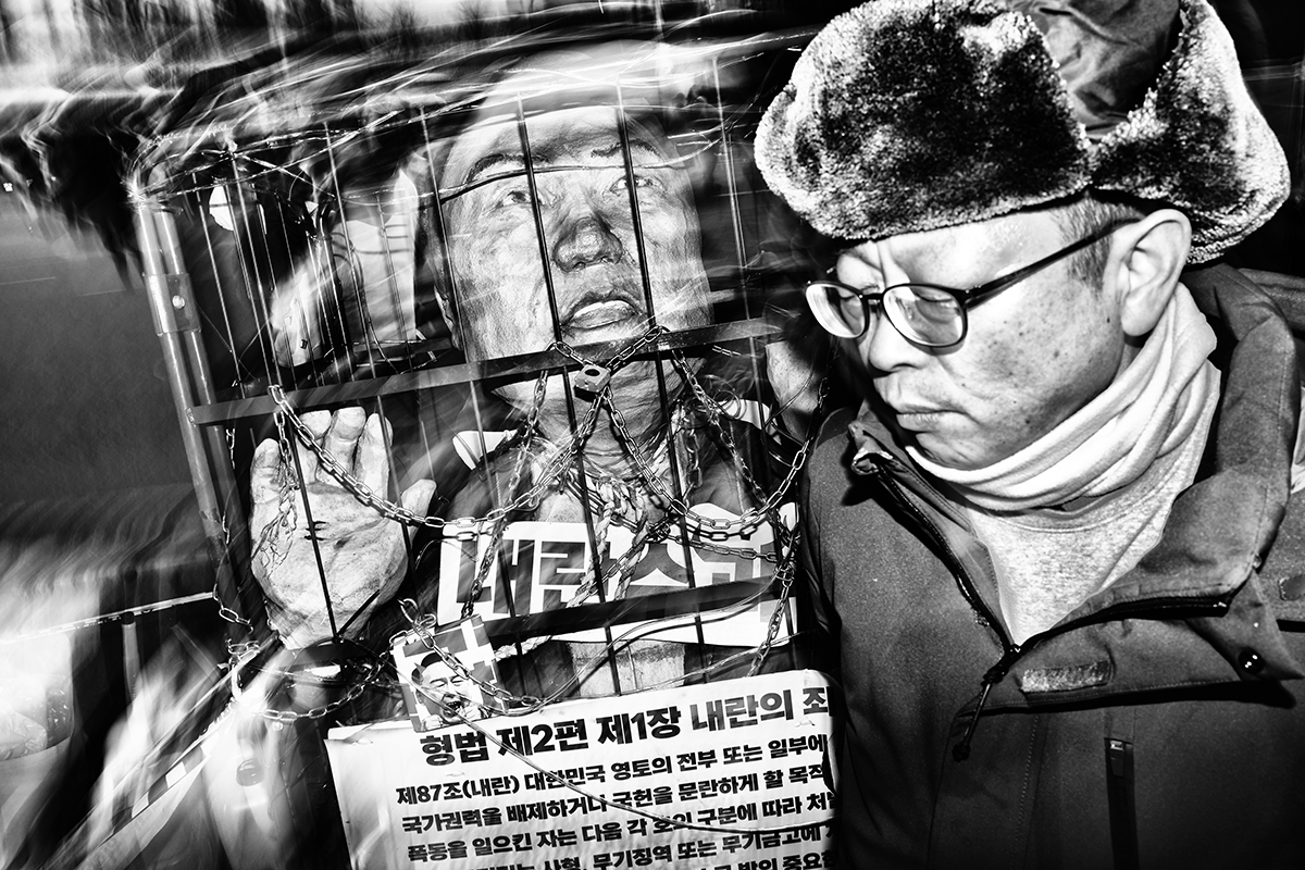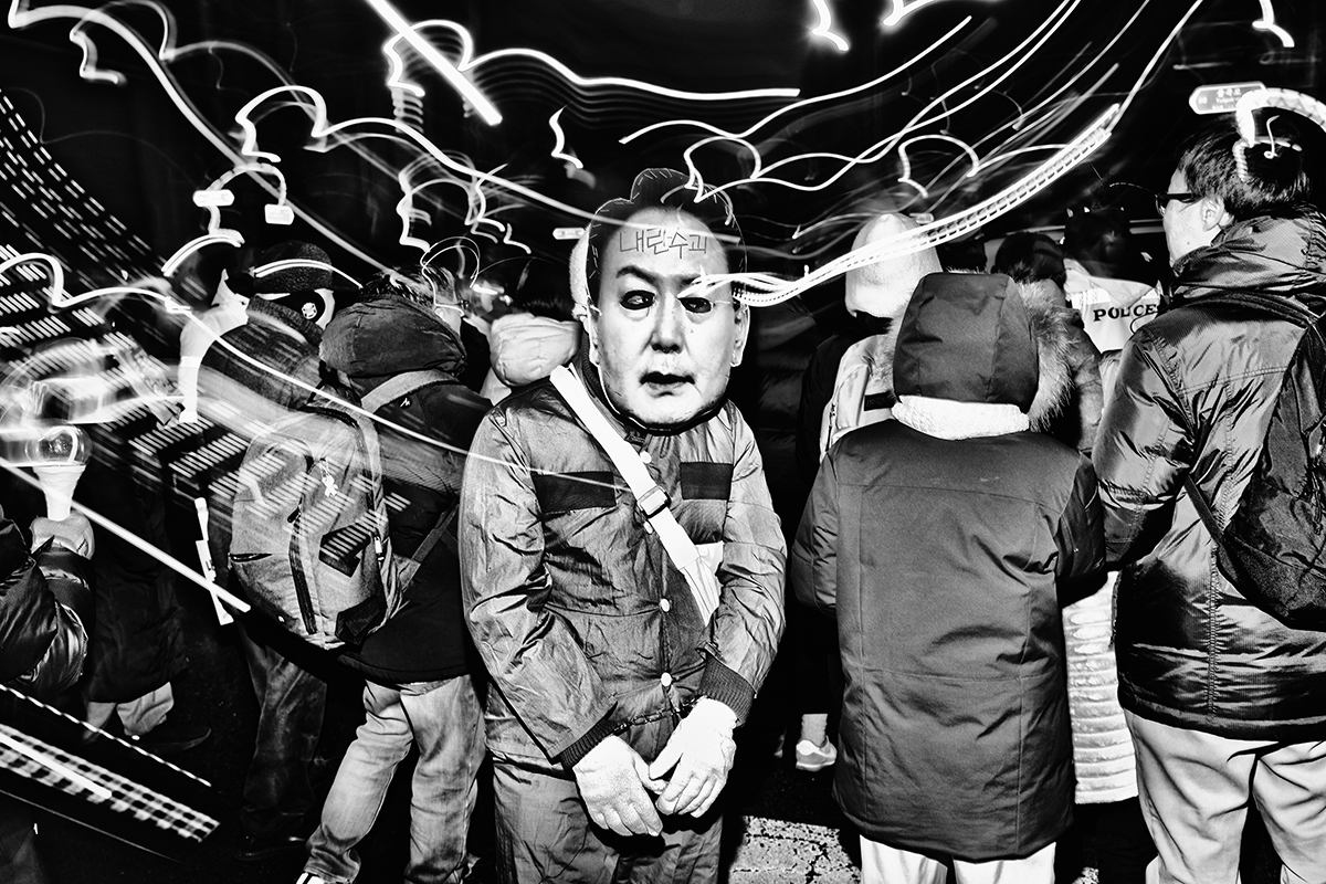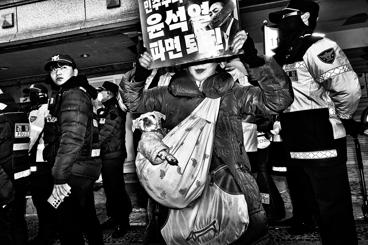 "Where Do We" is a street photography series that captures the spirit of South Korea’s anti-Yoon Suk Yeol protests, documenting the political crossroads of a nation. These demonstrations were sparked by President Yoon’s surprise declaration of martial law on December 3, 2024, in which he accused the Democratic Party (DPK) of subversive activities and conspiring with North Korean communists. The chaos that followed lasted six hours as shocked lawmakers from both parties rushed to repeal the decree. Although legislators successfully lifted martial law, public anger and frustration remained. Citizens from all walks of life gathered in Seoul to demand his resignation. On December 14, 2025, he was officially impeached. Protests continued every Saturday for approximately four months, ending on April 4, 2025, when the Constitutional Court upheld President Yoon's impeachment and formally removed him from office.