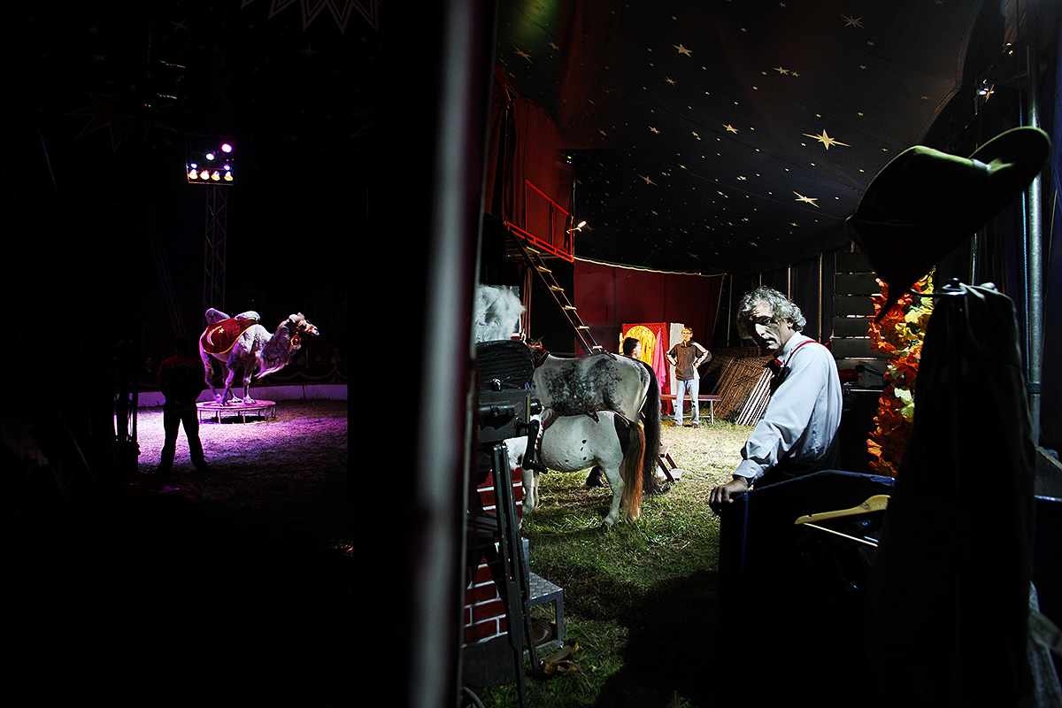 Circus Humberto is the largest and most famous circus in the Czech Republic. The documentation began in 2009, when I came to my hometown of Znojmo as an ordinary spectator, and continues. During that time, I have completed dozens of visits throughout the country and traveled thousands of kilometers. This topic is my fulfilled childhood dream, when I wanted to be a circus performer or a garbage collector. As a photographer, I have partially succeeded. The goal of my photographs is to capture circus art, a specific lifestyle and at the same time a tradition that is constantly changing and gradually disappearing in the traditional concept, whether it is the owners, artists, workers and of course the animals, in a way that the average viewer cannot see. In recent years, I have been most interested in the personality of the clown Russek with the stage name Mr. Chap. His photographs are mostly black and white, otherwise the theme of the circus is exclusively color photography. The goal of the project, in addition to capturing a specific life and its gradual changes, is to publish a book.