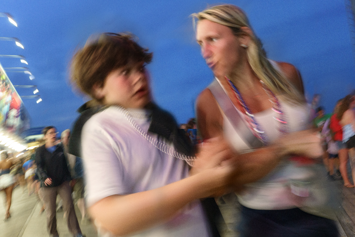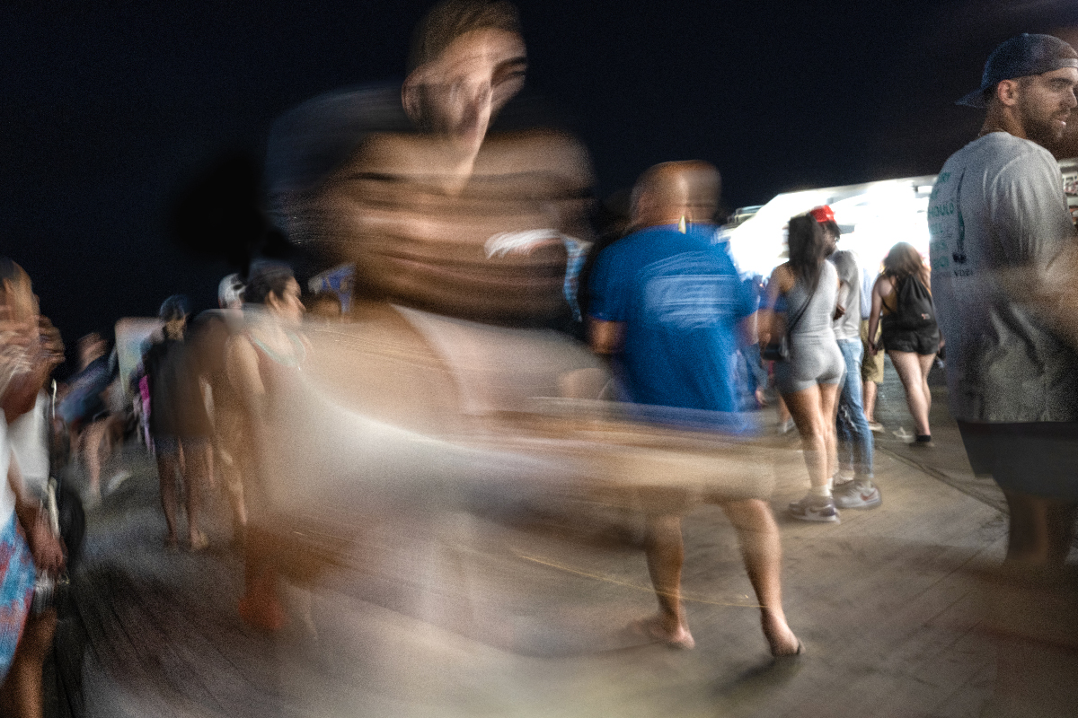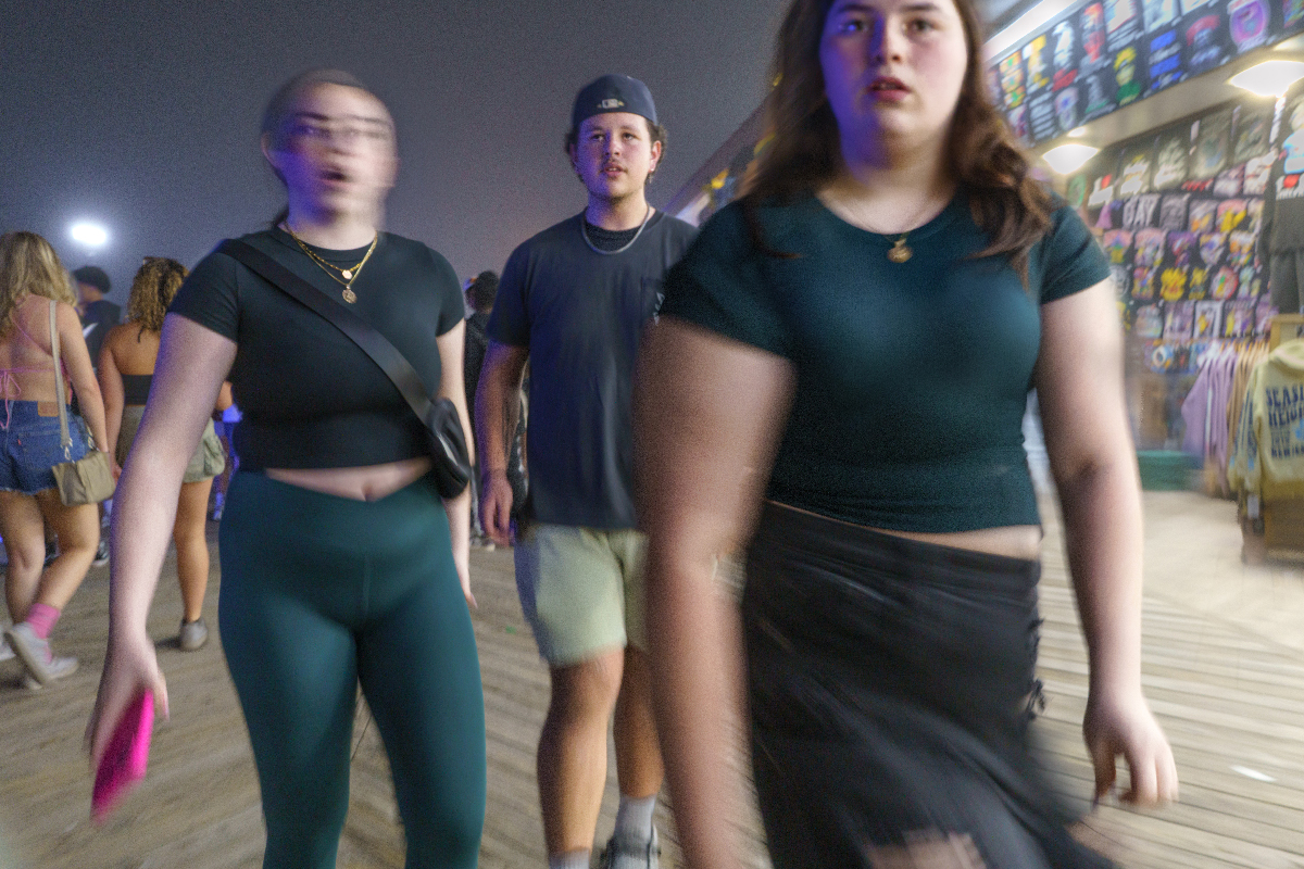 I watched life after dark with a bit of an anthropologist’s detachment - I remember seeing the scene as a person from a different culture might. But actually I was watching my own peers, my own culture. While other people were wrapped up in socializing, I noticed how differently teenagers acted and dressed when they gathered at night on the boardwalk, out of the watchful eyes of adults - the posturing, the roughhousing, the extroversion so extreme it almost seemed forced. (They look like they are having fun, behaving as young people ought - should I be behaving that way, too?) I looked at the frank uninhibitedness of drunken behavior, dancing bodies looking disjointed under the pulsating strobe, the exaggerated conversational gestures made necessary by music far too loud for normal conversation. I wondered what made the others so different from me. I wondered if I should (or could) join the rest of the world. I never did decide.