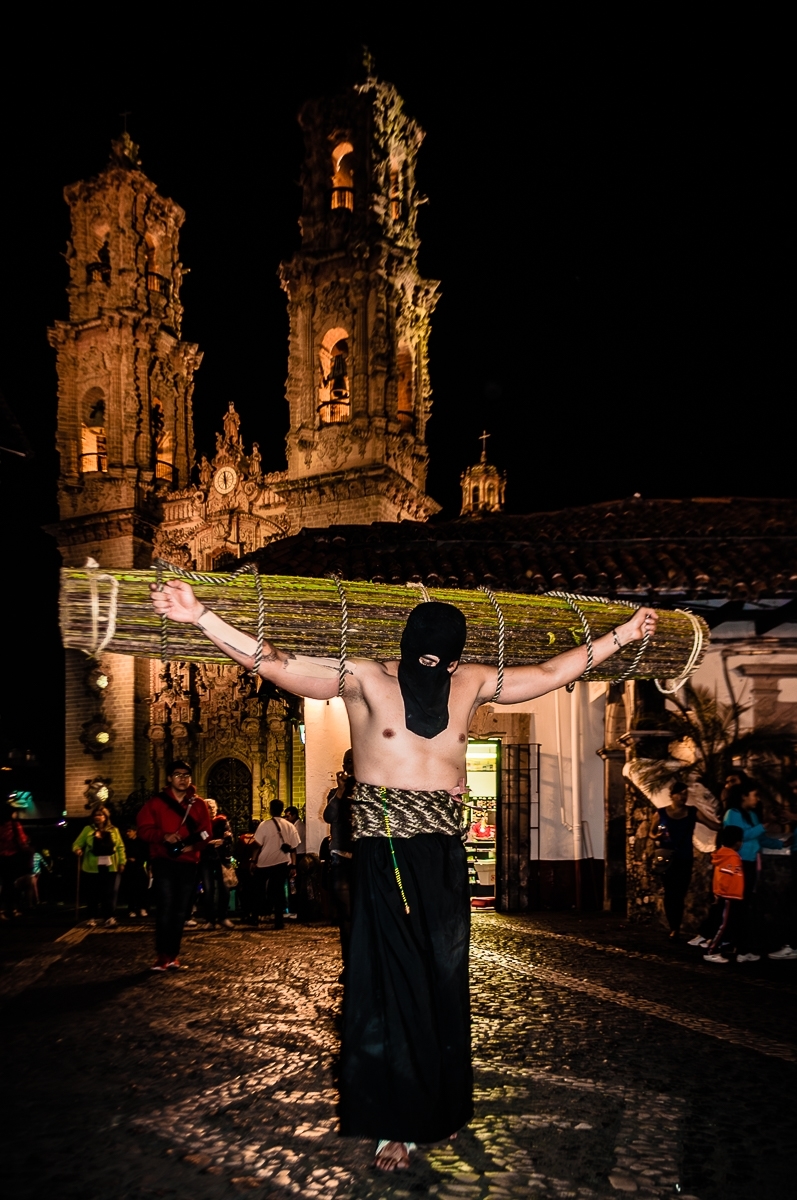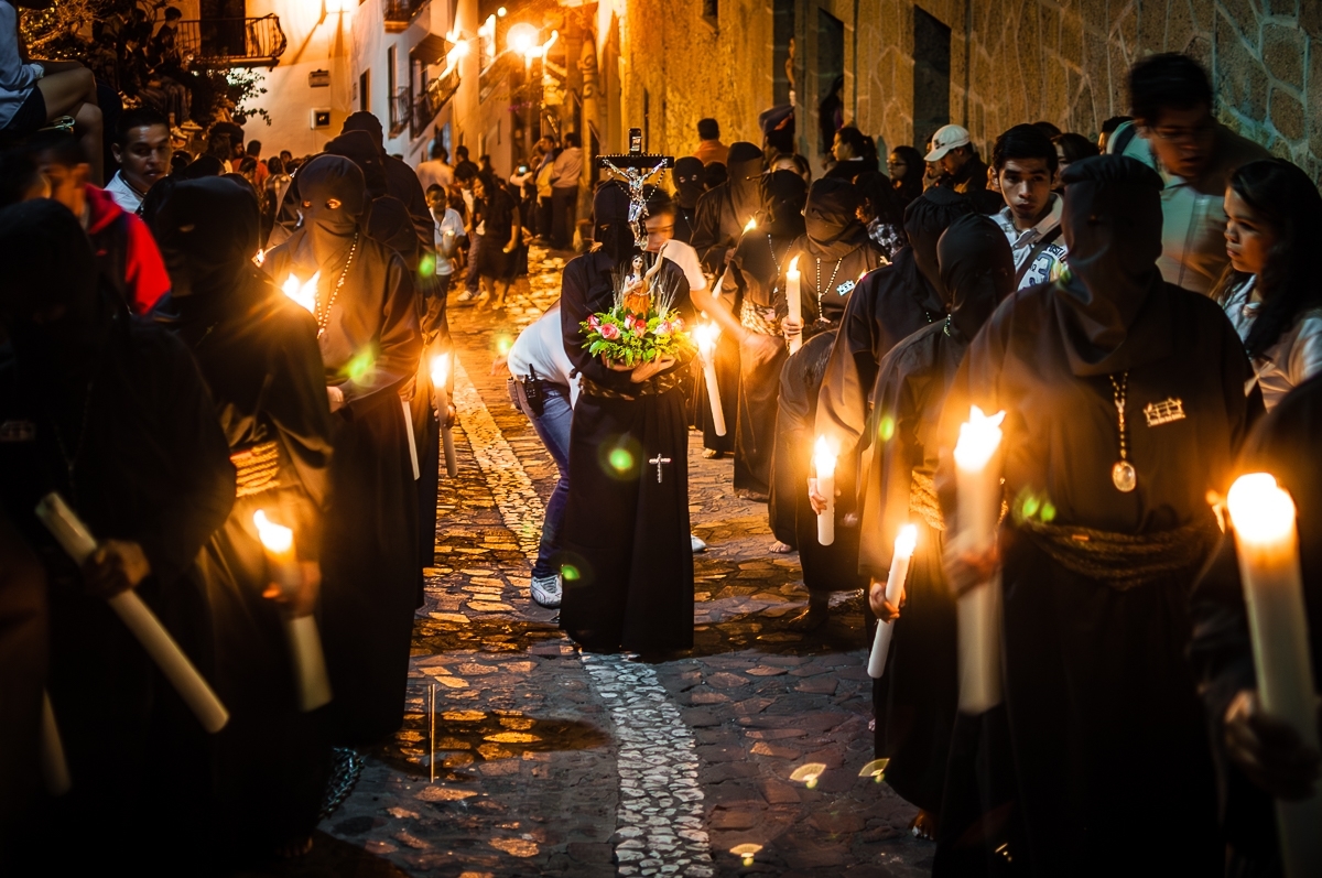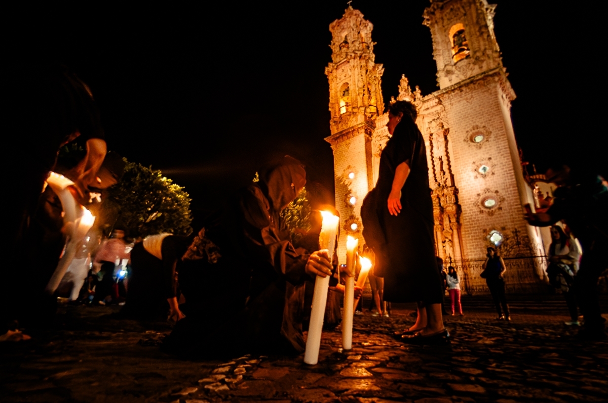 Durante la Semana Santa en Taxco, Guerrero, tienen lugar las solemnes procesiones de las hermandades de penitentes.