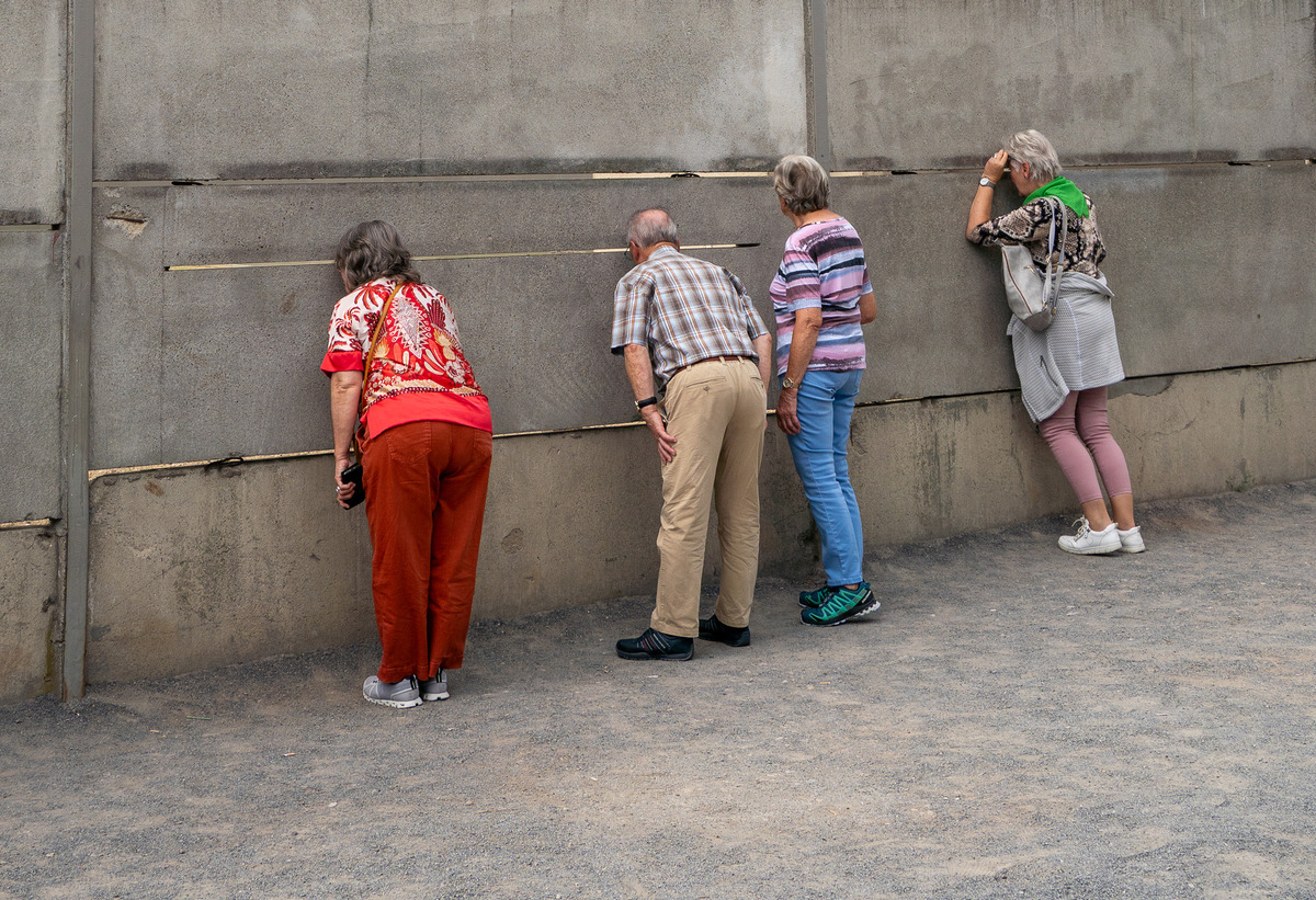 More than three decades after its fall, the Berlin Wall persists — not as a barrier, but as a backdrop to everyday gestures. In this series, fragments of the Wall and its surrounding sites become stages for looking, posing, and remembering. Visitors peer through cracks, photograph reflections, or simply walk by, folding history into routine.