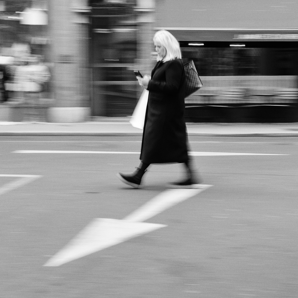 Others register as mass and trajectory - not individuals but forms, obstacles to navigate. Bodies are sensed just long enough to adjust course - a slight turn, quickened pace, protective gesture - before attention retreats inward. The camera operates from inside the condition it describes, navigating the same proximity and evasion.